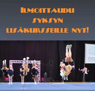 Vapaat paikat syksyn maa-akrobatian lisäkursseille on nyt avattu myClubiin! Lisäkursseilla on muutamia vain vapaita paikkoja, nappaa äkkiä oma paikkasi ja tule mukaan hiomaan akrotaitoja kohti tavoitteita! Kaikki lisäkurssit starttaavat ensi viikolla ja mukaan pääset helposti ensimmäisten viikkojen aikana. Lue lisäkurssien kuvaukset alta ja ilmoittaudu myClubissa tapahtumat-sivulla osoitteessa: https://northernlights.myclub.fi/flow/events/public Huomio: Lisäkurssit on tarkoitettu jo seuran joukkueissa harrastaville (ei uusille aloittelijoille). Tuu mukaan treenamaan akroja! - - - - ** MiniAkro – keskiviikkoisin klo 17.15-18.00 - MiniAkro on suunnattu kaikille minijoukkueissa harjoitteleville, jotka ovat parhaillaan opettelemassa flikkiä. Ryhmässä tehdään paljon flikin harjoittelua tukevaa kehonhallintaa ja valmistavia harjoitteita, sekä tietysti avulla flikkiharjoitteita. Ohjaajana Neea Grammer. - Paikkoja jäljellä 3 - Kurssimaksu 45€/hlö ** Akro 3-4 – torstaisin klo 17.00-17.45 - Maa-akrobatia 3-4 -lisäkurssi on tarkoitettu kaikille flikin jo ilman apua osaaville ja volttia harjoitteleville tai jo yksin tekeville, myös mini-ikäisille edistynyttä akroa tekeville. Tällä kurssilla tehdään pidempää sarjaa useampaan flikkiin tai volttiin päättyen, niiden harjoitteita sekä hyppy+volttiyhdistelmiä. Ohjaajana Riley Grammer. - Paikkoja jäljellä 2 - Kurssimaksu 45€/hlö ** Akro 1-2 (yli 13-vuotiaat) – sunnuntaisin klo 14.15-15.00 - Perusteet kuntoon ja tekniikkaa kohti flikkiharjoittelua! Tavoitteena parempi kehonhallinta? Tällä kurssilla tehdään paljon akrobatian perusteita, kehonhallinnan harjoitteita ja edetään vähitellen kohti käsinseisontaa, puolivolttia, takaperin siltakaatoja ja flikkiharjoittelua. Yhdistetty 1-2 tason kurssi on tarkoitettu kaikille alkutason akroilijoille ja niille, jotka osaavat jo siltakaadon ilman avustusta tai pienellä avulla taaksepäin. Ohjaajana Riley Grammer. - Paikkoja jäljellä 4 - Kurssimaksu 45€/hlö ** Akro 3-4 – sunnuntaisin klo 15.00-15.45 - Maa-akrobatia 3-4 -lisäkurssi on tarkoitettu kaikille flikin jo ilman apua osaaville ja volttia harjoitteleville tai jo yksin tekeville, myös mini-ikäisille edistynyttä akroa tekeville. Tällä kurssilla tehdään pidempää sarjaa useampaan flikkiin tai volttiin päättyen, niiden harjoitteita sekä hyppy+volttiyhdistelmiä. Ohjaajana Riley Grammer. - Paikkoja jäljellä 6 - Kurssimaksu 45€/hlö ** Akro 1-2 (yli 13-vuotiaat) – sunnuntaisin klo 17.45-18.30 - Perusteet kuntoon ja tekniikkaa kohti flikkiharjoittelua! Tavoitteena parempi kehonhallinta? Tällä kurssilla tehdään paljon akrobatian perusteita, kehonhallinnan harjoitteita ja edetään vähitellen kohti käsinseisontaa, puolivolttia, takaperin siltakaatoja ja flikkiharjoittelua. Yhdistetty 1-2 tason kurssi on tarkoitettu kaikille alkutason akroilijoille ja niille, jotka osaavat jo siltakaadon ilman avustusta tai pienellä avulla taaksepäin. Ohjaajana Riley Grammer. - Paikkoja jäljellä 3 - Kurssimaksu 45€/hlö ** Akro 1-2 (yli 13-vuotiaat) – sunnuntaisin klo 18.30-19.15 - Perusteet kuntoon ja tekniikkaa kohti flikkiharjoittelua! Tavoitteena parempi kehonhallinta? Tällä kurssilla tehdään paljon akrobatian perusteita, kehonhallinnan harjoitteita ja edetään vähitellen kohti käsinseisontaa, puolivolttia, takaperin siltakaatoja ja flikkiharjoittelua. Yhdistetty 1-2 tason kurssi on tarkoitettu kaikille alkutason akroilijoille ja niille, jotka osaavat jo siltakaadon ilman avustusta tai pienellä avulla taaksepäin. Ohjaajana Riley Grammer. - Paikkoja jäljellä 6 - Kurssimaksu 45€/hlö