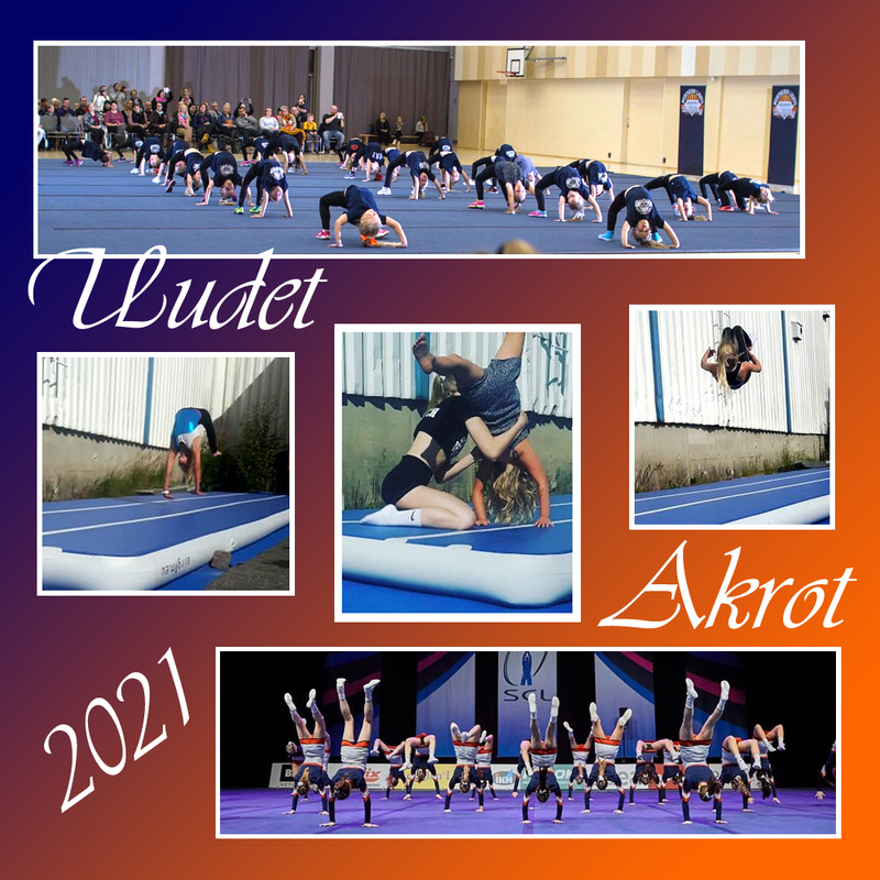 Supersuositut maa-akrobatian lisäkurssit jo harrastaville uusiutuvat vuonna 2021! Kurssien taitotasojen sisällöt on suunniteltu uusiksi vastaamaan paremmin kunkin taitotason tavoitteita. Mukana ovat edelleen suositut MiniAkro ja tanssijoille suunnattu oma akrokurssi, joka kantaa nyt nimeä Akro Dance. Muiden kurssien nimet ovat vaihtuneet leveleiden mukaisiksi ja samalla kursseille on asetettu taitovaatimus, mitä osallistujan tulee osata ennen kurssille osallistumista. Samoin jokaiselle kurssille on määritelty taitotavoite, jota kohti kurssilla harjoitellaan. Akro Basic -kurssilla aloitetaan maa-akrobatian perusharjoittelu ja tälle kurssille ei ole taitovaatimuksia. Valmentajat kertovat tammikuussa lisää maa-akrobatian kurssimuutoksista joukkueissa! Lisäkurssit näkyvät lukujärjestyksessä ja ilmoittautuminen niille avautuu tammikuun puolivälissä. Kurssit käynnistyvät maanantaista 8.2. alkavalla viikolla ja kursseja ohjaa seuran akromaestro Riley Grammer. Tervetuloa mukaan akroilemaan ensi vuonna! - - - - * AKRO DANCE Tällä cheertanssijoille suunnatulla kurssilla harjoitellaan akrobatiassa vaadittavaa kehonhallintaa ja oikeita linjoja sekä liikeratoja mitkä tukevat tanssiakrobatiaosaamista. Kurssilla opetellaan taitoja flikkiin ja volttiin saakka erilaisten osaharjoitteiden avulla, kunkin tanssijan lähtötason ja kehityksen mukaan. * MINIAKRO MiniAkro on omistettu 8-12 vuotiaille lapsille. Kurssilla harjoitellaan akrobatiassa vaadittavaa kehonhallintaa, oikeita linjoja sekä liikeratoja. Akrobatiataitojen liikeradat tulevat tutuiksi erilaisten osaharjoitteiden avulla ja eteneminen taidoissa tapahtuu yksilöt huomioiden. * AKRO BASIC Kurssilla harjoitellaan akrobatiassa vaadittavaa kehonhallintaa, oikeita linjoja sekä liikeratoja. Kurssilla opetellaan oikea tekniikka käsilläseisontaan, kärrynpyörään, siltakaatoon, puolivoltiin sekä arabialaiseen. * AKRO LEVEL 1 – Tavoitteena: Flikki Ennen kurssille osallistumista sinun tulisi osata: Kurssilla keskitytään flikin harjoitteluun turvallisesti osaharjoitteiden sekä osaavan valmentajan avulla. Kurssilla kehitetään akrobatiassa vaadittavaa voimaa, kehonhallintaa ja liikkuvuutta. Taso tukee level 1 tason akrobatiaa sekä valmistaa level 2 tasolle. * AKRO LEVEL 2 – Tavoitteena: Flikki-flikki Ennen kurssille osallistumista sinun tulee osata: Kurssilla harjoitellaan pidempiä flikkisarjoja sekä akrobatiataitojen yhdistämistä. Taitoja opetellaan osaharjoitteiden avulla niin, että akrobatiassa vaadittu nopeus ja voima kehittyy. * AKRO LEVEL 3 – Tavoitteena: Voltti Ennen kurssille osallistumista sinun tulee osata: Kurssilla keskitytään voltin tekniikkaan ja taidon opetteluun. Voltin harjoittelua toteutetaan paikka- ja juoksuakrobatiassa valmentajan avustamana sekä osa-harjoitteiden avulla turvallisesti. * AKRO LEVEL 4-5 – Tavoitteena: Suora- ja kierrevoltti Ennen kurssille osallistumista sinun tulee osata: Kurssilla keskitytään oikeisiin linjoihin suorassa voltissa sekä kierteen opetteluun eri osaharjoitteiden sekä valmentajan avustamana. Kurssilla pääsee oppimaan myös haastavampia akrobatiasarjoja kierrevoltin jälkeen.