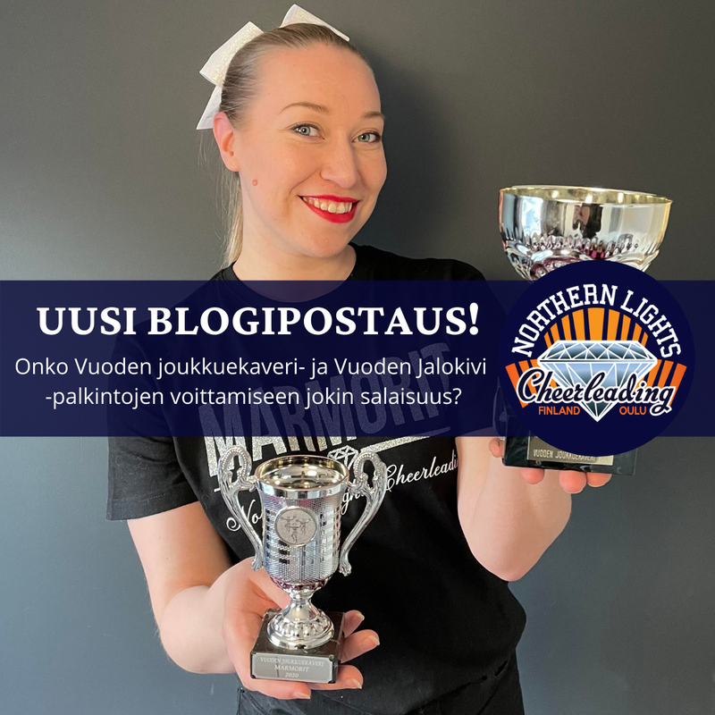 Uusimmassa blogikirjoituksessa tutustutaan klassikkojoukkueen harrastajiin Jaanaan ja Katjaan, jotka ovat voittaneet samat joukkuepalkinnot viime vuonna Marmoreissa ja parikymmentä vuotta sitten harrastaessaan nuorina NL-joukkueissa. Väliin mahtuu elettyä elämää ja taukovuosia harrastuksesta, mutta onko joukkuepalkintojen voittamiseen jokin salaisuus ja millaiset persoonat kätkeytyvät Vuoden Joukkuekavereiden ja Vuoden Jalokivien taakse? Blogiin pääset tästä: northernlightscheerleading.blogspot.com Lukuiloa ja Iloista Pääsiäistä kaikille! |