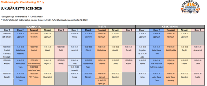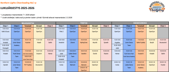 Lukujärjestys 7.1.2026 alkaen