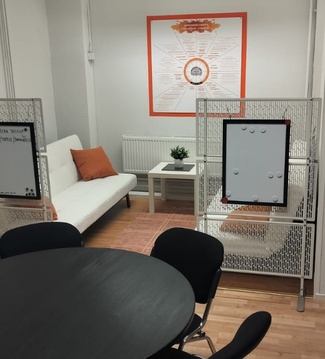 - Akrosali 8m x 10m, cheermattoa 7x10m ja lattia parketti. Varusteluna äänentoisto, patjoja, ponnistuslautoja ja pienten lasten harjoitteluvälineitä. Tilaan saatavilla myös taittopöytiä ja -tuoleja, jolloin tilan saa kalustettua luentotilaksi noin 20-30 henkilölle.